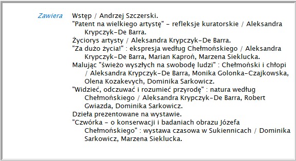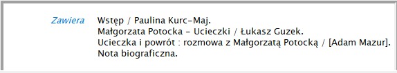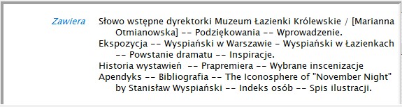 Fragment ze spisem treści