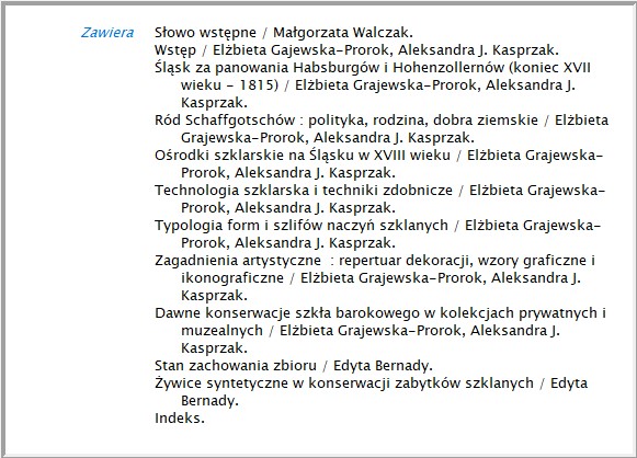 Szkło śląskie w XVIII wieku ze zbiorów muzealnych i kolekcji prywatnych w Polsce : historia, technologia, konserwacja. T. 1, Artykuły / Elżbieta Gajewska-Prorok, Aleksandra J. Kasprzak, Edyta Bernady.