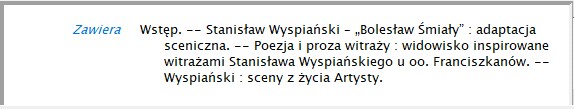 Fragment ze spisem treści